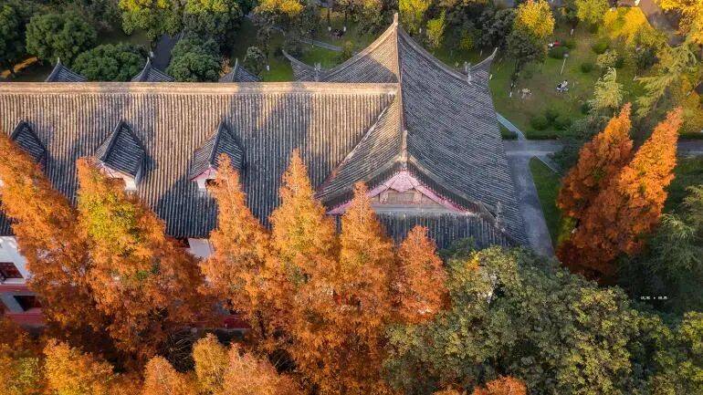 四川大学望江校区的“望江三馆”作为标志性建筑为人们津津乐道,而在“望江三馆”的南面还坐落着三幢古色古香的中式建筑,分别是知文楼、瑞文楼、萃文楼。其中,知文楼的位置最为醒目,它位于听荷池畔,与“望江三馆”之一的校史展览馆隔听荷西路正对,笔直的听荷西路两旁生长着参天的法国梧桐树,知文楼因此让人过目难忘。瑞文楼、萃文楼则在一片密林中若隐若现,隔玉章南路相对而立,瑞文楼位于西侧,萃文楼位于东侧。