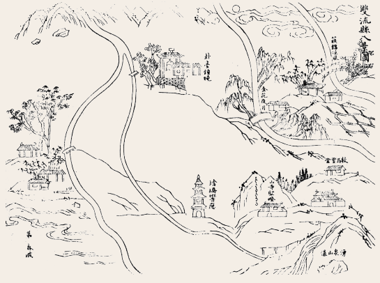 双流县八景图示意图(图源:光绪版《双流县志》)