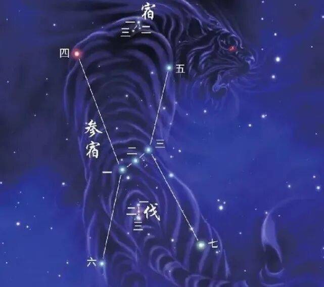 古人认为参宿为白虎形象主军事含义 下面的伐三星为兵器形象也主军事