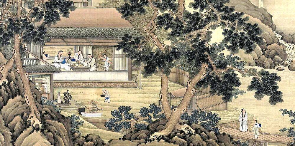 清代画家黄应谌的《陋室铭图轴》(局部),描绘了古代士子向往的“谈笑有鸿儒”的场景。