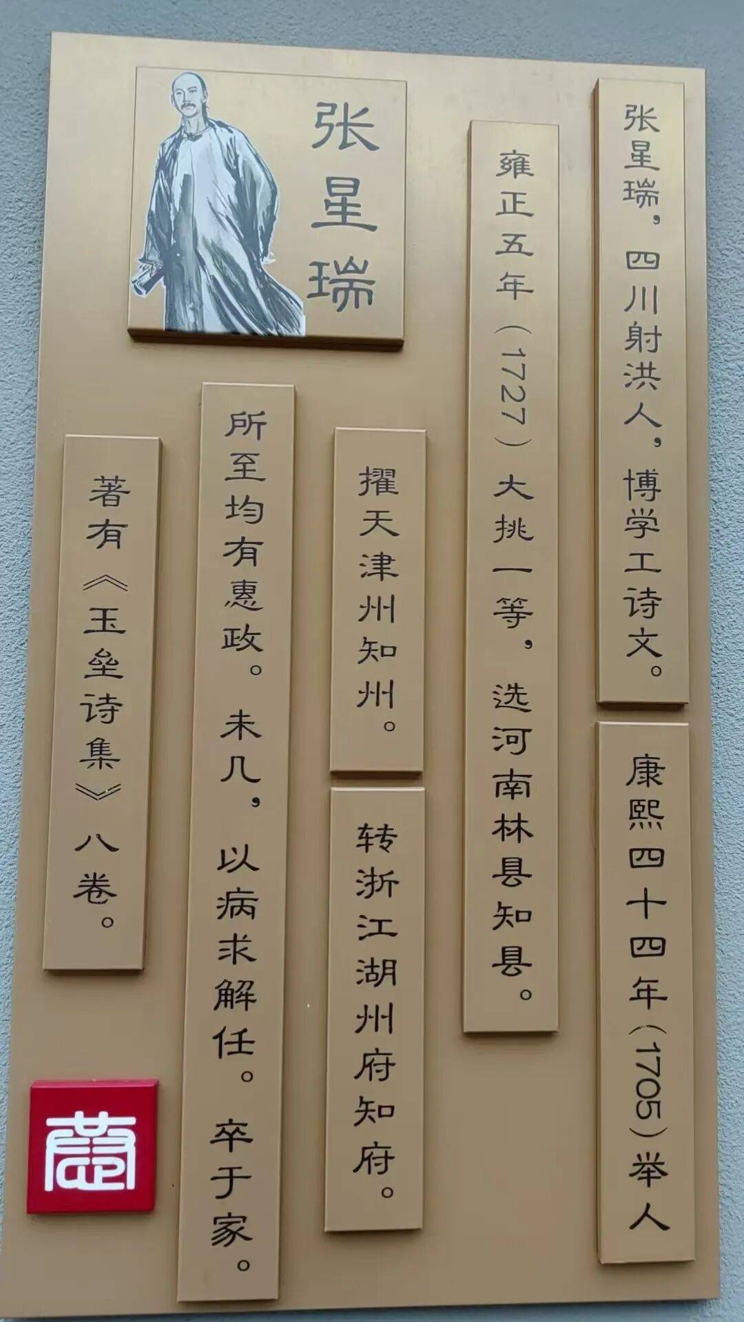 张星瑞,字薇垣,号玉垒,清康熙四十四年(1706)举人,出身于射洪复兴镇鹤鸣山下的一个清寒的耕读之家。清雍正五年(1728),这个以忧济百姓为初心的举人,被吏部选拔为林县知县。由于其一脸纯真、两眼明亮、诚实端方、谈吐不凡,后随例“乾清宫引见,一日三次”,顺利通过了御前面试,并得到了雍正皇帝的赏识,“赐貂皮、朝珠、蟒服等物”,被钦点并提拔为天津州知州。