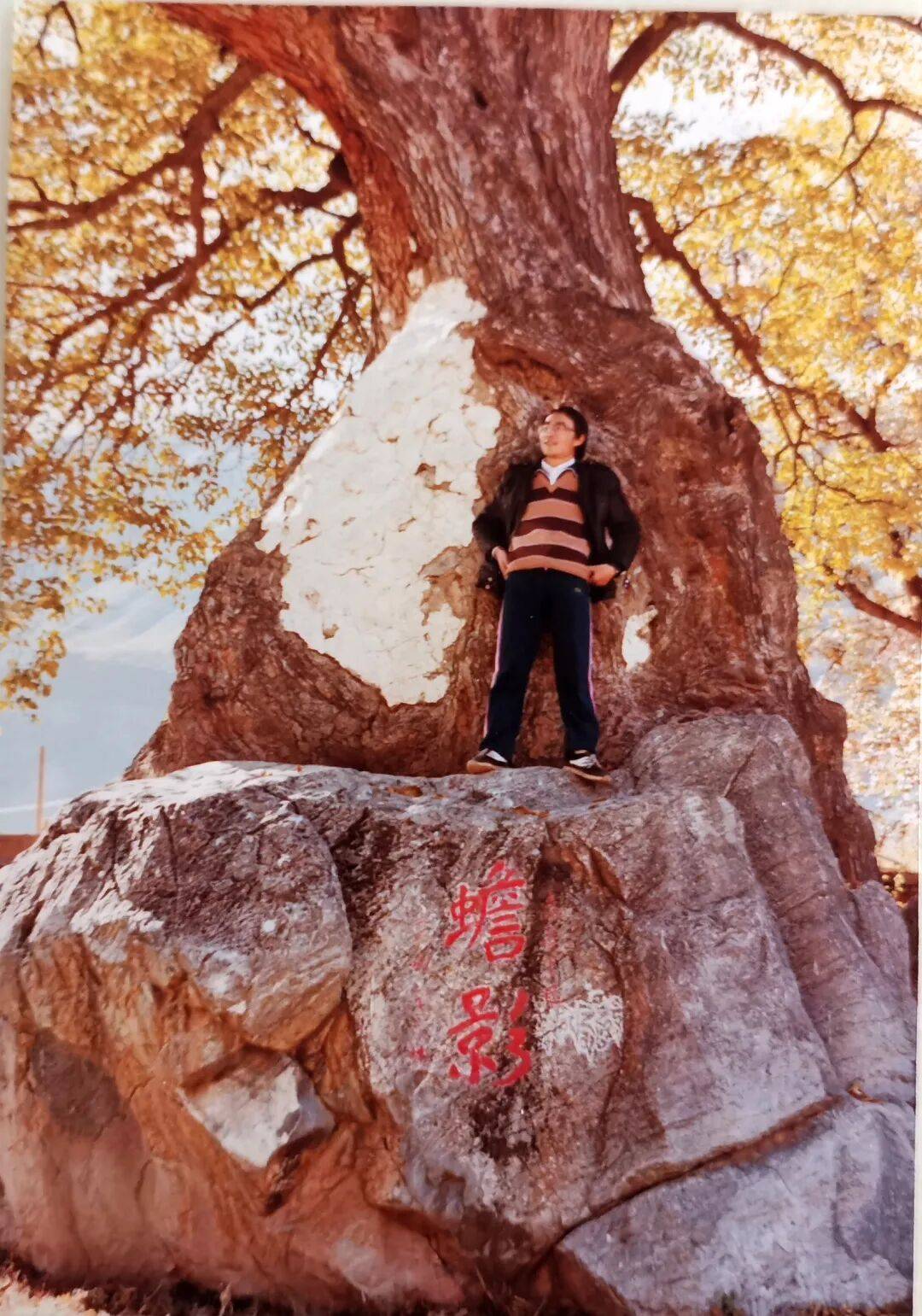 本文作者奉友湘在巴塘城郊“古桑抱石”景点留影(奉友湘 供图)