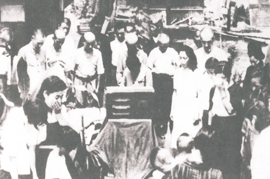 1945年8月15日,日本天皇裕仁以广播的形式,宣布接受《波茨坦公告》。图为东京市民在收听广播。
