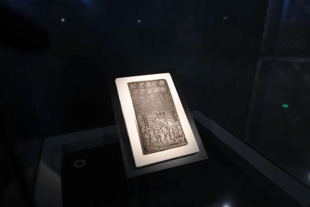 交子金融博物馆的“千斯仓”钞版复制品。这是现今最广为流传的交子纸币图样,学界对其真伪尚有争议,但我们可以通过它来略窥交子面貌 (新华社记者 唐文豪 摄)