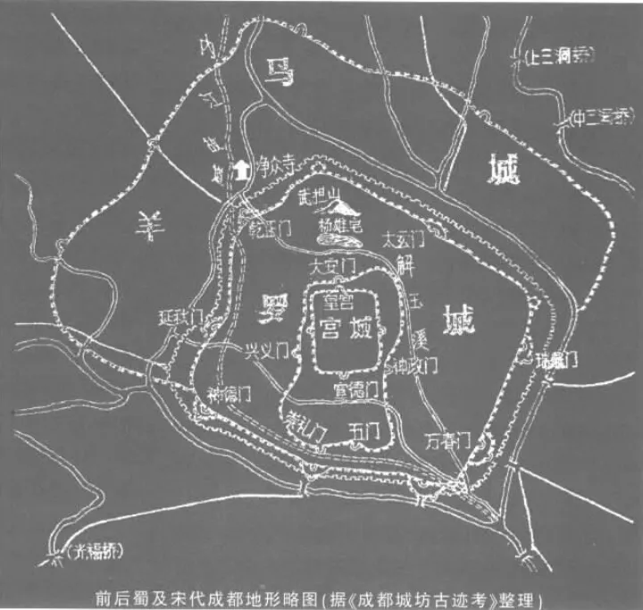 前后蜀及宋代成都地形略图(图源:《成都城坊古迹考》)