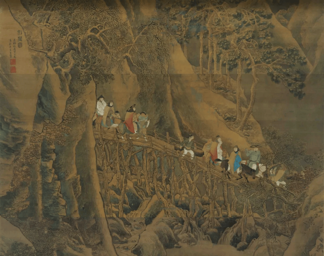 《蜀山栈道图》局部,(后梁)关仝/绘(台北故宫博物院 藏)