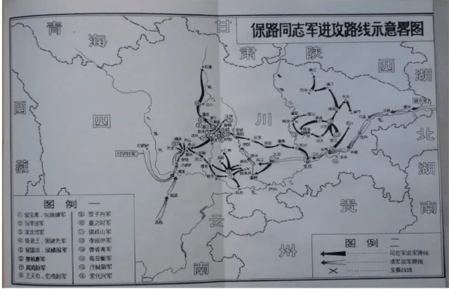 1911年5月,清政府将商办川汉铁路权出卖给外国,激起全川人民愤怒,爆发了著名的四川保路运动。图为四川保路同志军进攻路线示意图(图源:张澜纪念馆网)