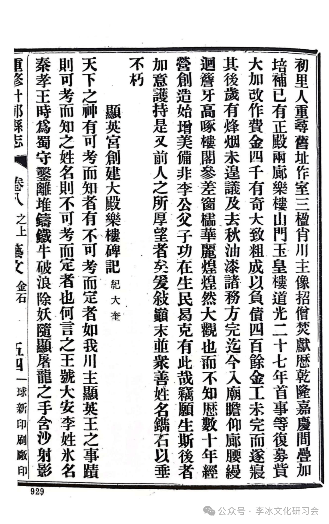 【历史文化】李冰治水文献⑥——什邡显英宫创建大殿乐楼碑记