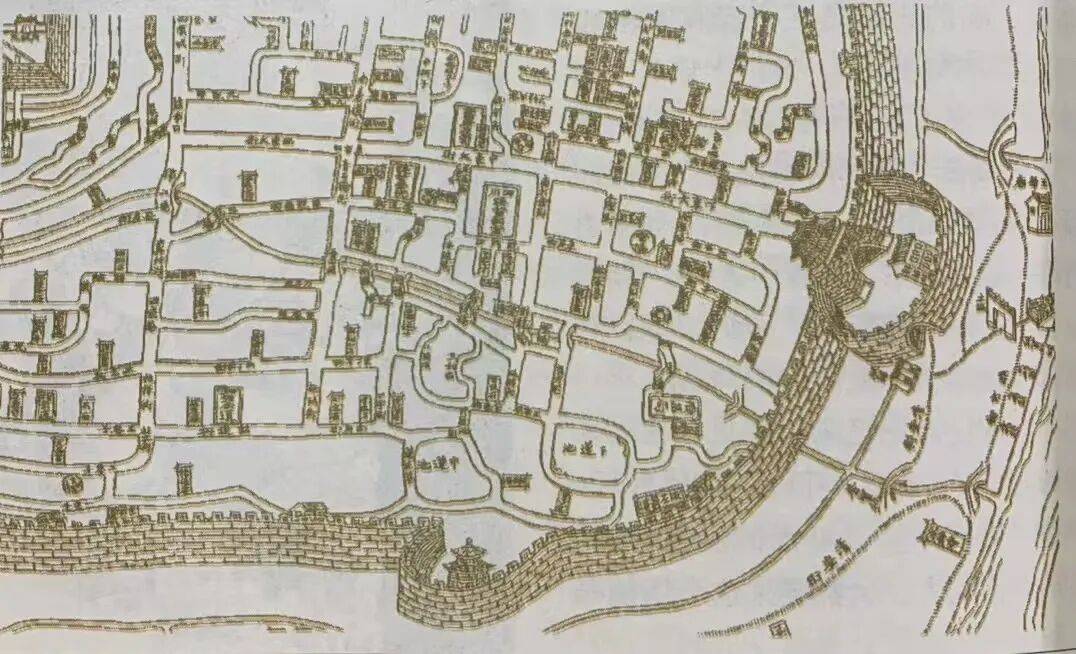 《四川省城街道图》(清光绪二十年制)从皇城右下角始,东大街一直延伸到东门城门(赖立供图,图源:翻拍自《锦江记忆》)