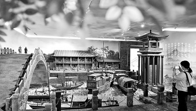 5月18日,市民在位于河南洛阳市的隋唐大运河文化博物馆内,参观复原的隋唐时期新潭码头。黄政伟摄/光明图片