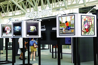 2022年7月,第三届江苏(南京)版权贸易博览会现场,数字藏品艺术展区吸引观众驻足。视觉中国/光明图片