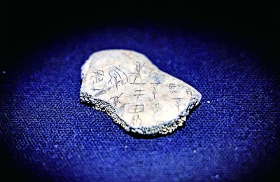 国家典籍博物馆“殷墟甲骨”专题展展出的“甲骨2174”。左上为甲骨文中的“兔”字。新华社发