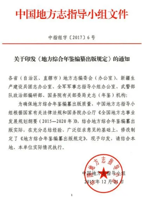 ②中国地方志指导小组:《地方综合年鉴编纂出版规定》,2017年12月21日。