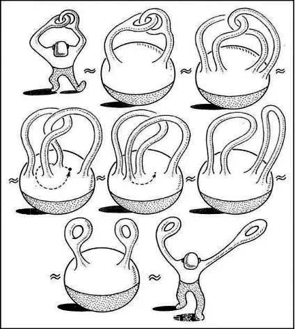 从几何的角度看,拓扑学的源头可追溯到1736年,L.欧拉(L.Euler,1707-1783年)发表了真正属于拓扑学的第一篇论文。该论文研究的问题源起于18世纪,即哥尼斯堡七桥问题。在数学上,关于哥尼斯堡七桥问题、多面体欧拉定理、四色问题等都是拓扑学发展史的重要问题。哥尼斯堡河上建有七座桥,将河中间的两个岛和河岸联结起来。人们闲暇时经常在这上边散步,一天有人提出:能不能每座桥都只走一遍,最后又回到原来的位置。这个看起来很简单又很有趣的问题吸引了大家,很多人在尝试各种各样的走法,但谁也没有做到。看来要得到一个明确、理想的答案还不那么容易。利用普通数学知识,每座桥均走一次,那这七座桥所有的走法一共有7 × 6 × 5 × 4 × 3 × 2 × 1 = 5040(种)七桥问题本质是“一笔画问题”。欧拉说此问题无解,且给出了连通图可以一笔画的充要条件是:奇点的数目不是0个就是2个(连到一点的数目如果是奇数条,就称为奇点;如果是偶数条,就称为偶点。要想一笔画成,必须中间点均是偶点,也就是有来路必有另一条去路,奇点只可能在两端。因此任何图能一笔画成,奇点要么没有,要么在两端)。七桥图形中,没有一点含有偶数条数,因此上述的任务无法完成。完成“一笔画”任务的先决条件——