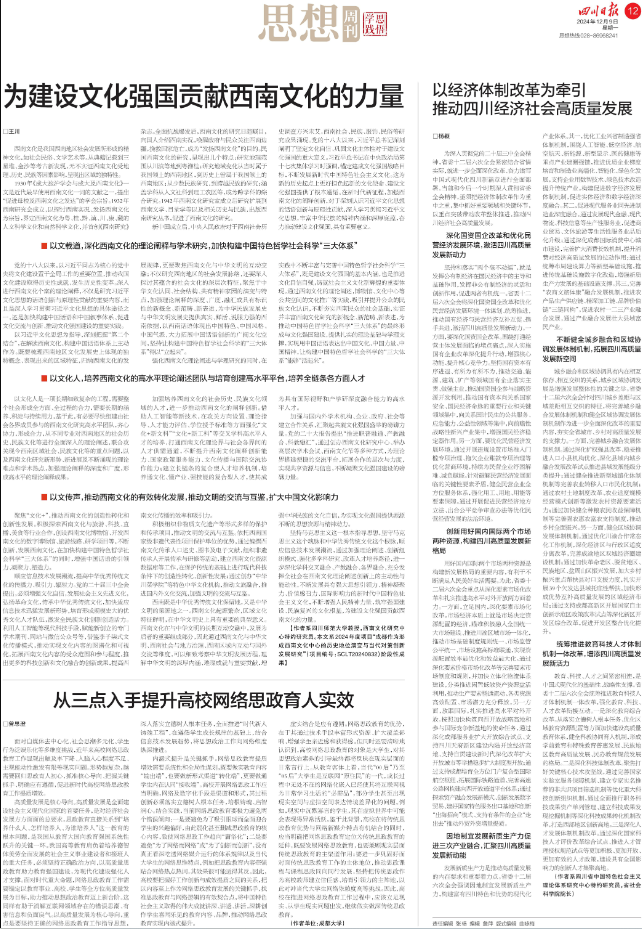 以文载道,深化西南文化的理论阐释与学术研究,加快构建中国特色哲学社会科学“三大体系”