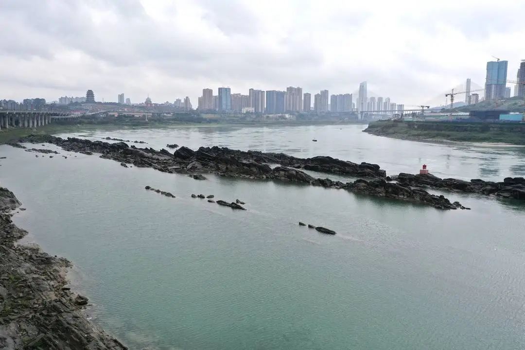 记者在陈塘关社区看到,长江江面的龙脊石东西走向,长约数百米,远眺如一条巨龙在长江里翻腾,令人震撼。