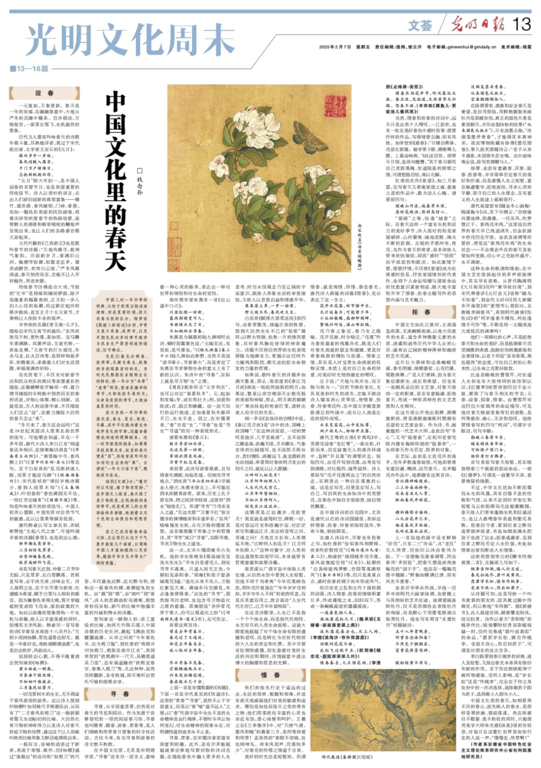 不过,中华文化犹如不断涅槃而永生的凤凰,具有自强不息的性格和气质,从来不会因时序变化和短暂乌云的阻碍而无法振翼翱翔。春天给人们带来蓬勃生机和旺盛活力,也让人感喟春华易逝和繁花易败。拒春自守者,看到后者之弊而连带摈弃前者,未免如倒洗澡水把孩子也泼了出去;拒春逃避者,见到后者之弊而否定人生价值,未免如惜春出家而断送人生情缘。