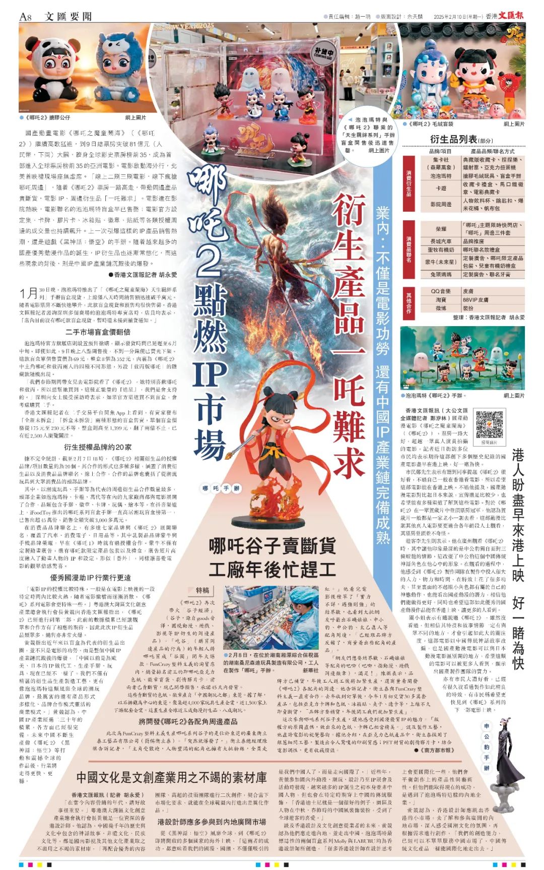 【文化传播】香港《文汇报》:《哪咤2》点燃IP市场 衍生产品一咤难求