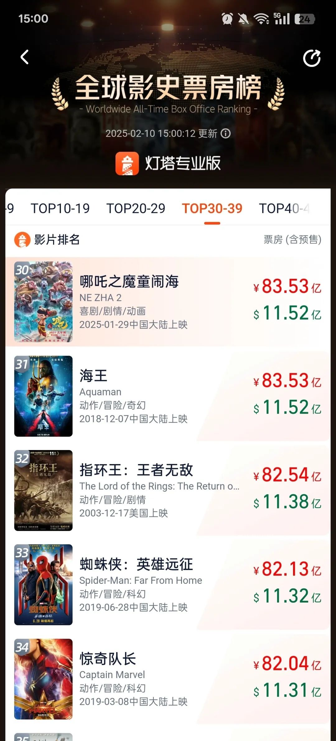 2025年春节档,动画电影《哪吒之魔童闹海》(以下简称《哪吒2》)在五年期待中回归,再度掀起“哪吒热”,成为现象级话题。截至2月10日,《哪吒2》总票房(含预售)突破11.52亿美元,超过《海王》,进入全球影史票房榜前30名,也是票房TOP30影片中唯一非好莱坞影片。