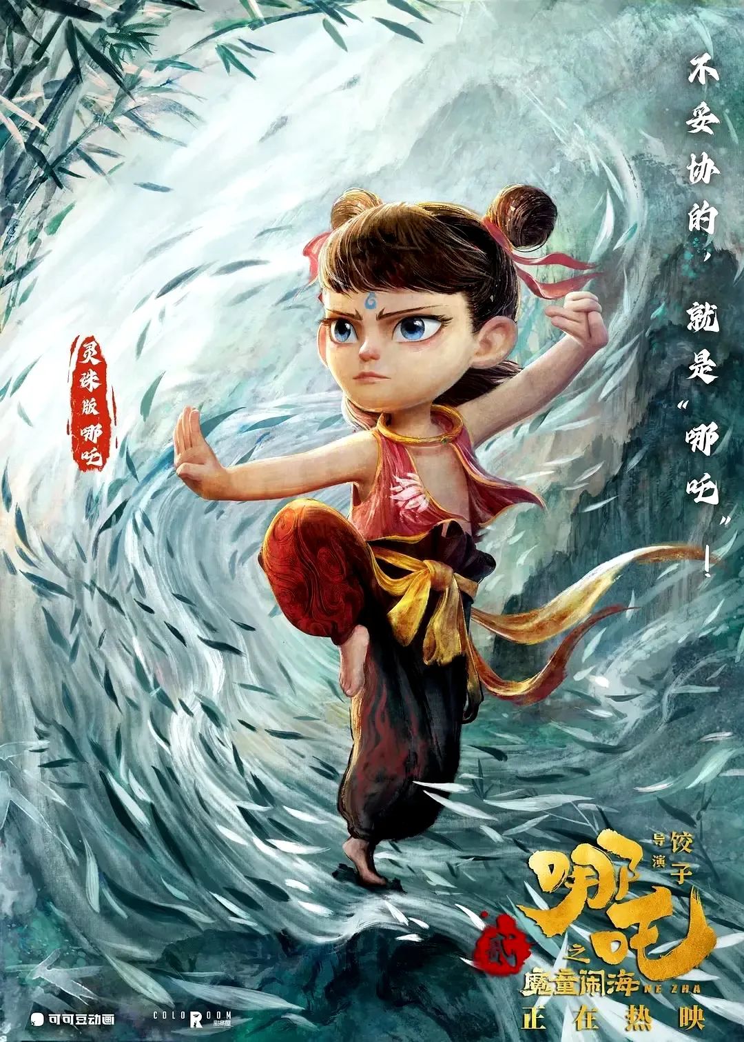 多年以后,一部短片变成两部长片,场景从一片大海和一座孤岛,变成陈塘关、玉虚宫和龙宫,角色从两个狭路相逢的倒霉士兵,变成哪吒、敖丙、李靖、殷夫人、申公豹、太乙真人、无量仙翁、四海龙王、海底妖族……还有一点,导演的名字,从“饺克力”变成了“饺子”。