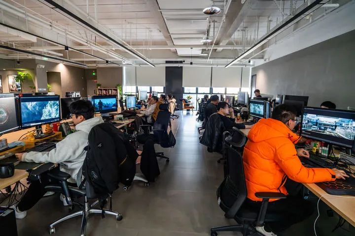 2025年2月10日拍摄的《哪吒之魔童闹海》(《哪吒2》)视觉特效制作公司墨境天合成都数字图像科技有限公司的工作区(新华社记者 薛晨 摄)