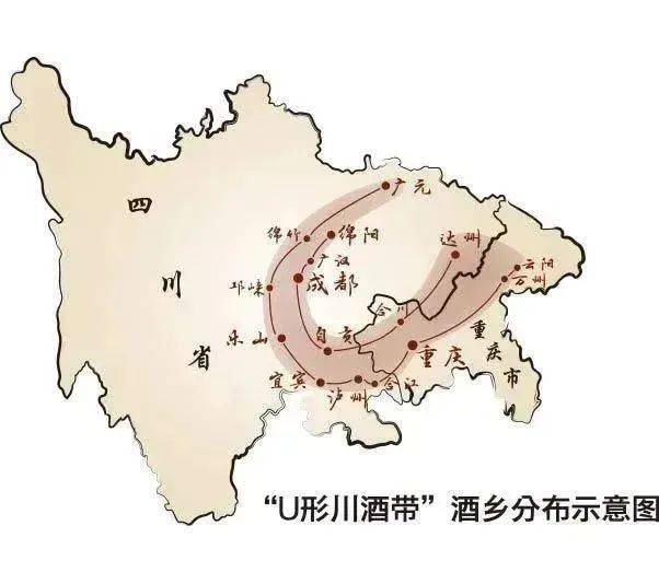 “U形川酒带”酒乡分布示意图(图源:四川文旅厅)