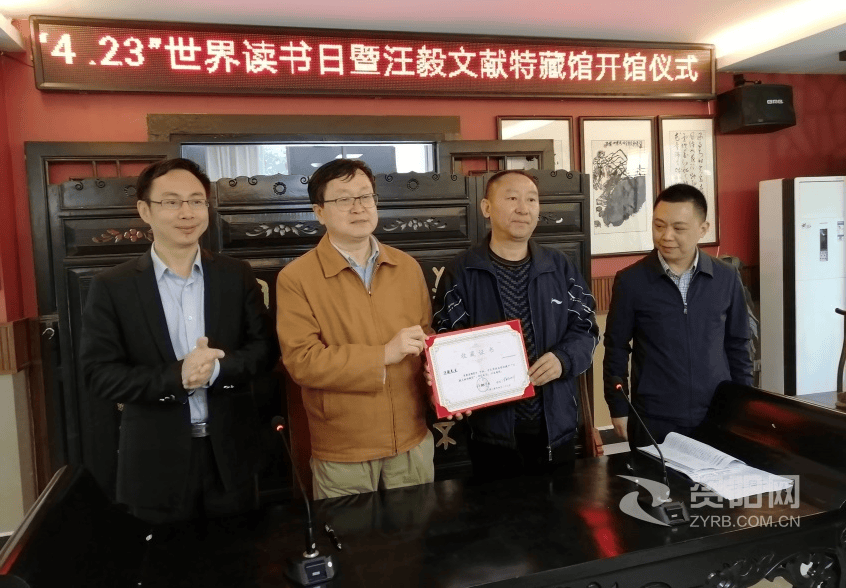 2020年4月23日,汪毅文献特藏馆开馆(左二为汪毅 )