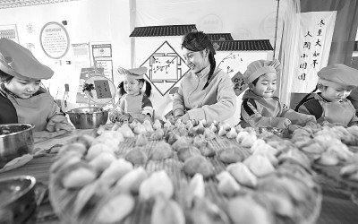 在山东省临沂市沂南县大庄镇中心幼儿园,老师在指导小朋友包饺子迎接冬至。新华社发