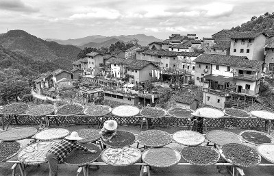 在安徽省黄山市歙县阳产村,村民在秋分当日晾晒农作物。新华社发