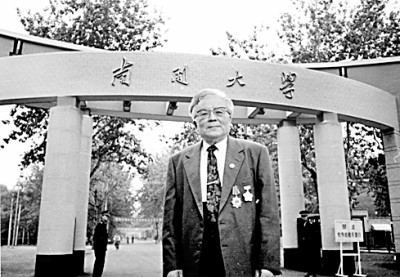 1999年,南开大学八十年校庆之际,来新夏于校门前留影纪念。照片由作者提供