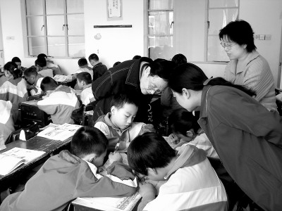 鲁洁在小学课堂调研。图片由作者提供