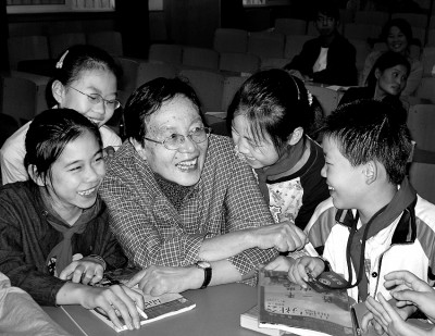 鲁洁与小学生在一起。图片由作者提供