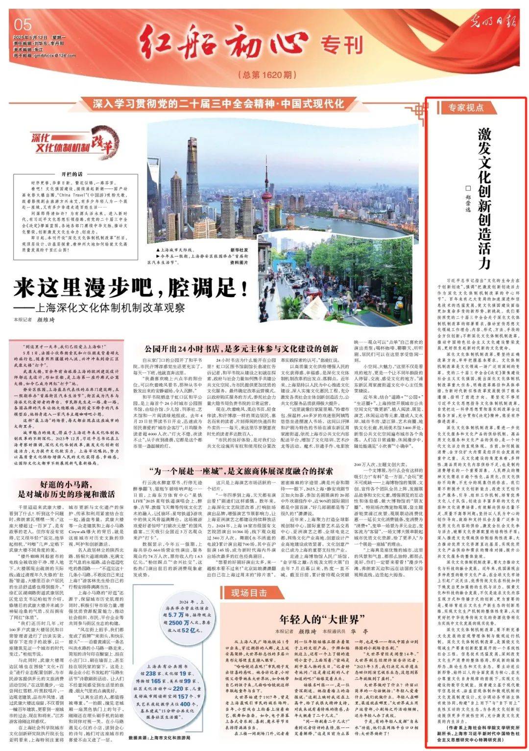 习近平总书记指出“文化的生命力在于创新创造”,强调“把激发创新创造活力作为深化文化体制机制改革的中心环节”。百年未有之大变局的加速演进和信息技术的迅猛发展,使文化强国建设面临更加复杂多变的新形势、新挑战。我们要按照党的二十届三中全会关于深化文化体制机制改革的部署要求,推动宣传思想文化领域工作理念、内容、形式、方法、手段的全方位创新;不断深化文化体制机制改革,推动中国特色社会主义文化建设繁荣发展,更好担负起新时代新的文化使命。