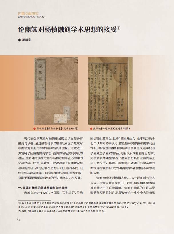 【论苑】论焦竑对杨慎融通学术思想的接受‖范靖宜