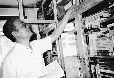 史革新在家中查阅书籍。