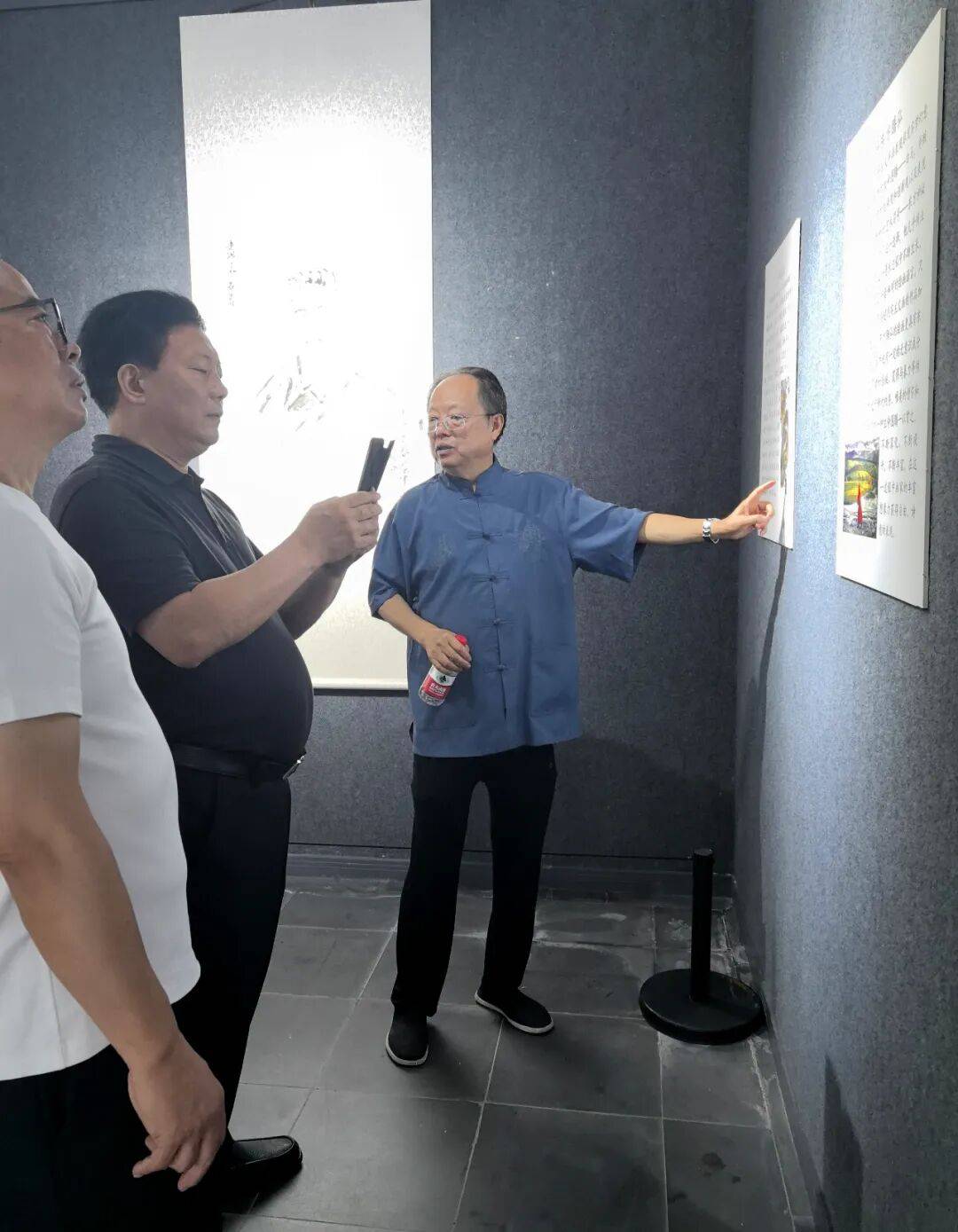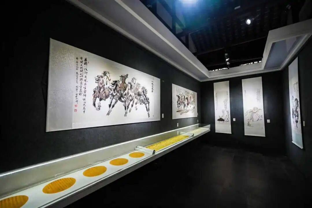 正默思时,突听一轻声细语:“你也来了?”转头见《环球人物》西南老总赵彬丰正朝我走来:“这次展出真是太用心了,空间设计颇具深意,独具匠心。”还没等我回话,“是啊,从‘诗书启蒙’起步,经‘书画互鉴’长廊,终抵‘艺道合一’”《现代艺术》杂志社总编辑蒲秀政也靠过来。我们三人便同行,沿曲折回廊,一路品评赏鉴。