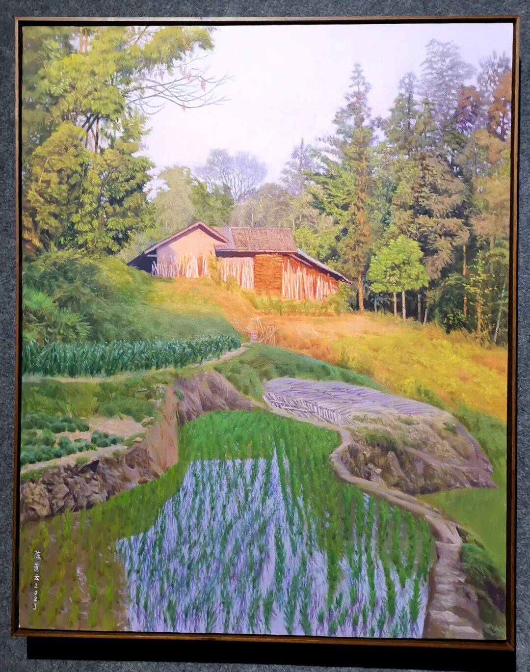 《乡恋》 布面油画 2023年 陈道云 作(2024年2月16日蓬州闲士摄于迎新春2024成都画院年度美术作品展)