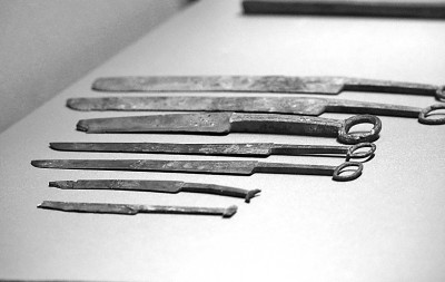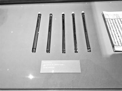 山东博物馆展出的春秋时期书刻工具。 新华社发