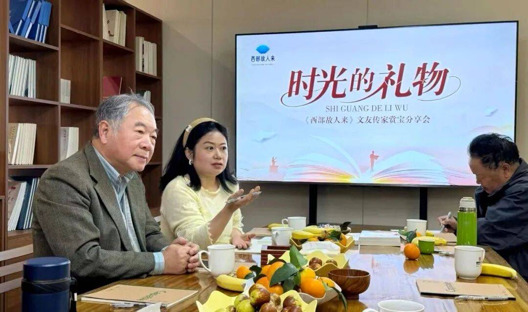 桑宜川(左一)在《西部故人来》文友传家赏宝分享会上