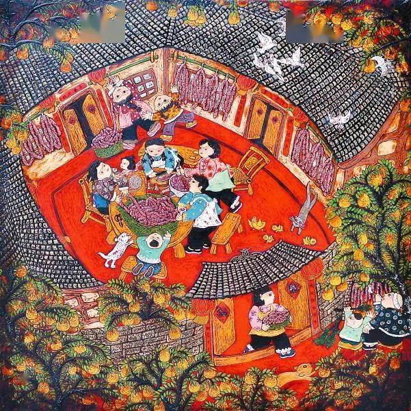 《丰年腊味》(农民画) 蔡燕 作(图片来源:四川日报)