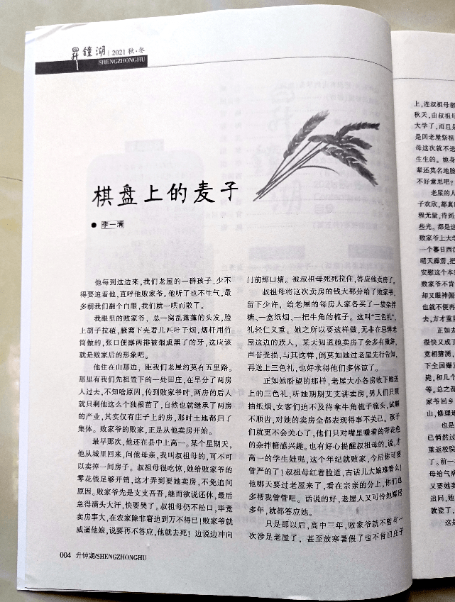 又是一年清明时,细雨春风寄哀思。一个烟雨朦胧的午后,我再次拿起南部县作协编辑出版的《昇钟湖》2021秋·冬合刊(总第3期)这本文学刊物,翻看一位逝去的作家写的短篇小说《棋盘上的麦子》,“李一清”三个字被用长方形框起来,这特别的符号再一次让我的心隐隐作痛。两年,先生已离开我们两年。