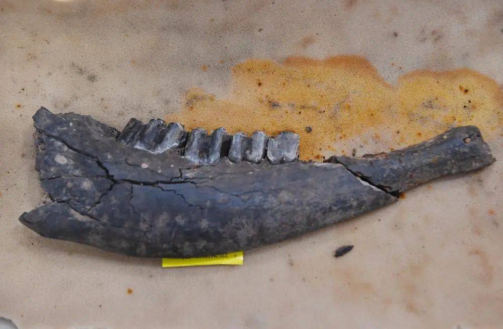 濛溪河遗址内出土的被烧过的动物骨骼(2023年12月5日摄)
