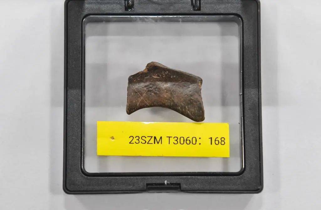 濛溪河遗址内出土的有X形划痕的骨器(2023年12月5日摄)