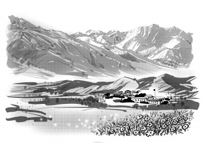 拖拉机冒着一串串黑烟,吭哧吭哧地停下了。司机大叔跳了下来,摇着头,双手比画道:走不了了。草原渐渐被抛在身后,前面是一片戈壁,只有一条遍布碎石的羊肠小道,他们换乘摩托车,一路颠簸。