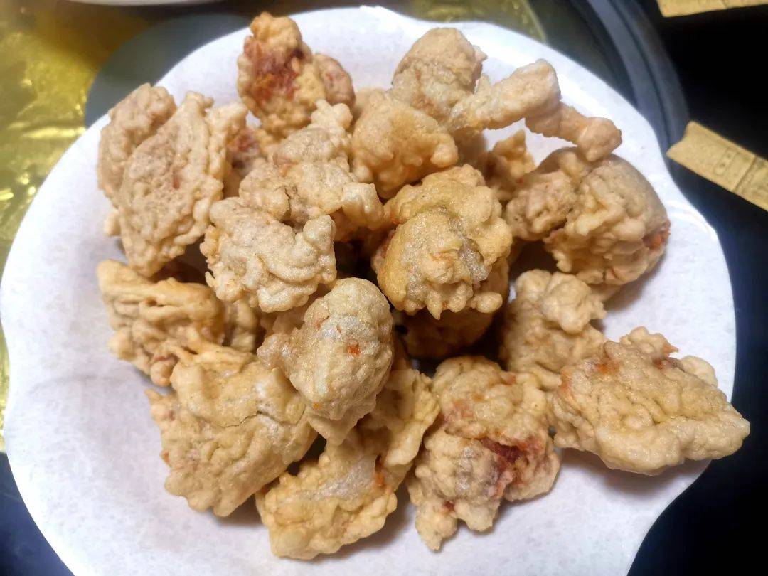 炸酥肉的时刻,堪称这场美食盛宴的巅峰高潮。铁锅里倒入菜籽油,火苗欢快地舔舐着锅底,油温缓缓地升高,空气里弥漫着令人心焦的期待。妈妈站在灶台前,神情专注庄重,宛如掌控千军万马的威武将军。裹好面糊的肉条刚一滑入锅中,“滋滋”声瞬间奏响,那是新年最为热闹的开场曲,唤醒了屋子里沉睡已久的年味。肉条或肉块在油锅里欢快地翻滚、跳跃,像一群顽皮的孩童尽情地嬉戏,不过片刻,就披上了一层金黄酥脆的外衣,色泽如朝阳般绚烂夺目,香味勾得人不停地咽口水。一阵工夫,半熟的酥肉就炸好了,妈妈将炸得金黄酥脆的半熟的酥肉舀起;又总是留下十多坨酥肉在油锅里继续炸着,那香气扑鼻而来,香得我们直吞口水。妈妈总会夹起炸好的酥肉,轻轻吹几口,然后送到我们嘴边:“小心烫,尝尝,香不香?”咬上一口,外酥里嫩,花椒的麻、肉的鲜、面糊的香在口中瞬间绽放开来,那滋味,是童年镌刻在味蕾上的独家记忆,是家的温暖具象化的味道。