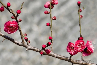 梅花数枝点朱唇。