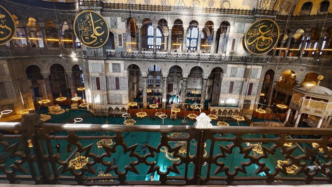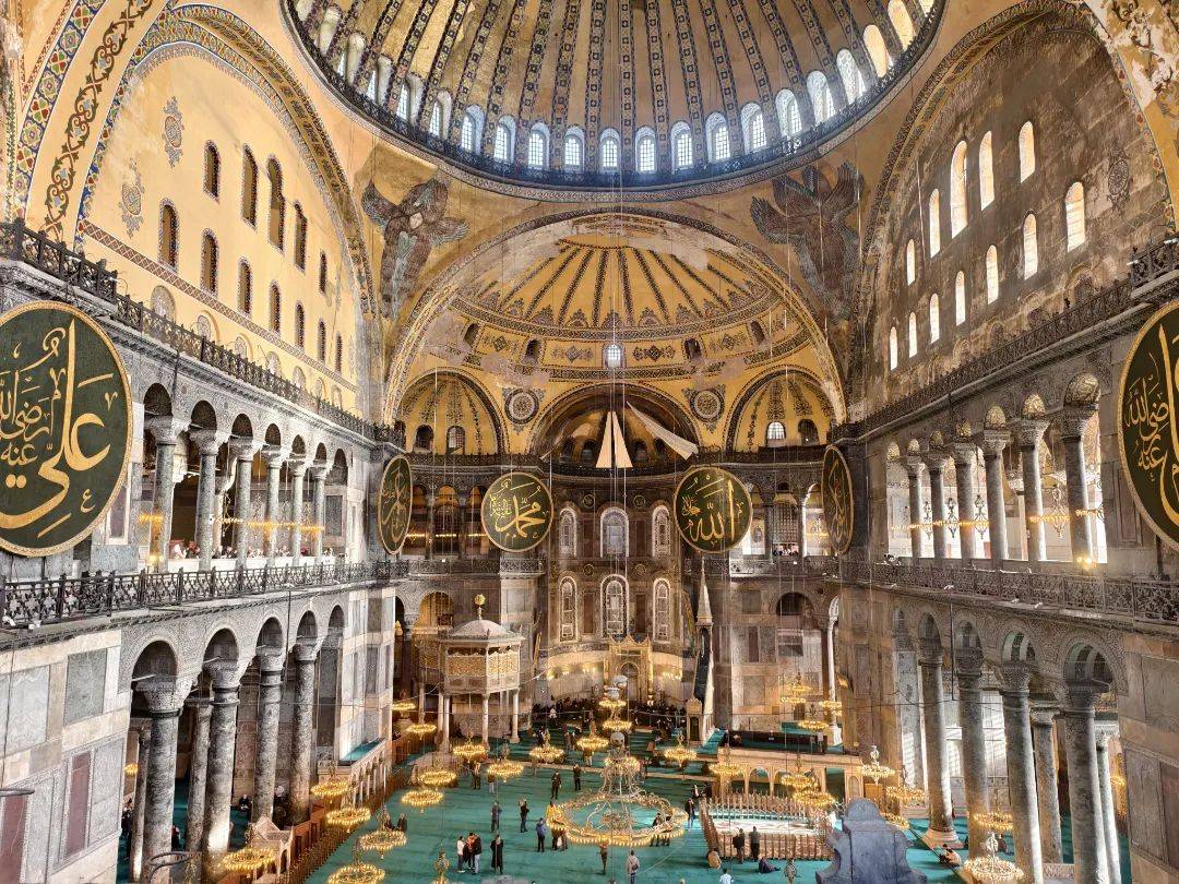 注:圣索菲亚大教堂系世界十大令人向往的教堂之一,为伊斯坦布尔地标建筑。公元532年,由拜占庭皇帝查士丁尼一世下令建造,1453年改为清真寺并为后来蓝色清真寺设计模版,1985年列入世界文化遗产。