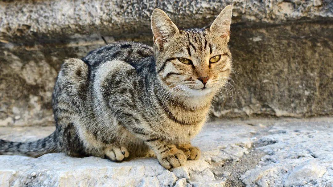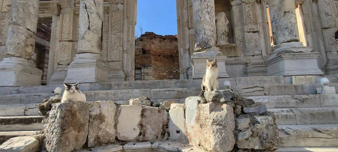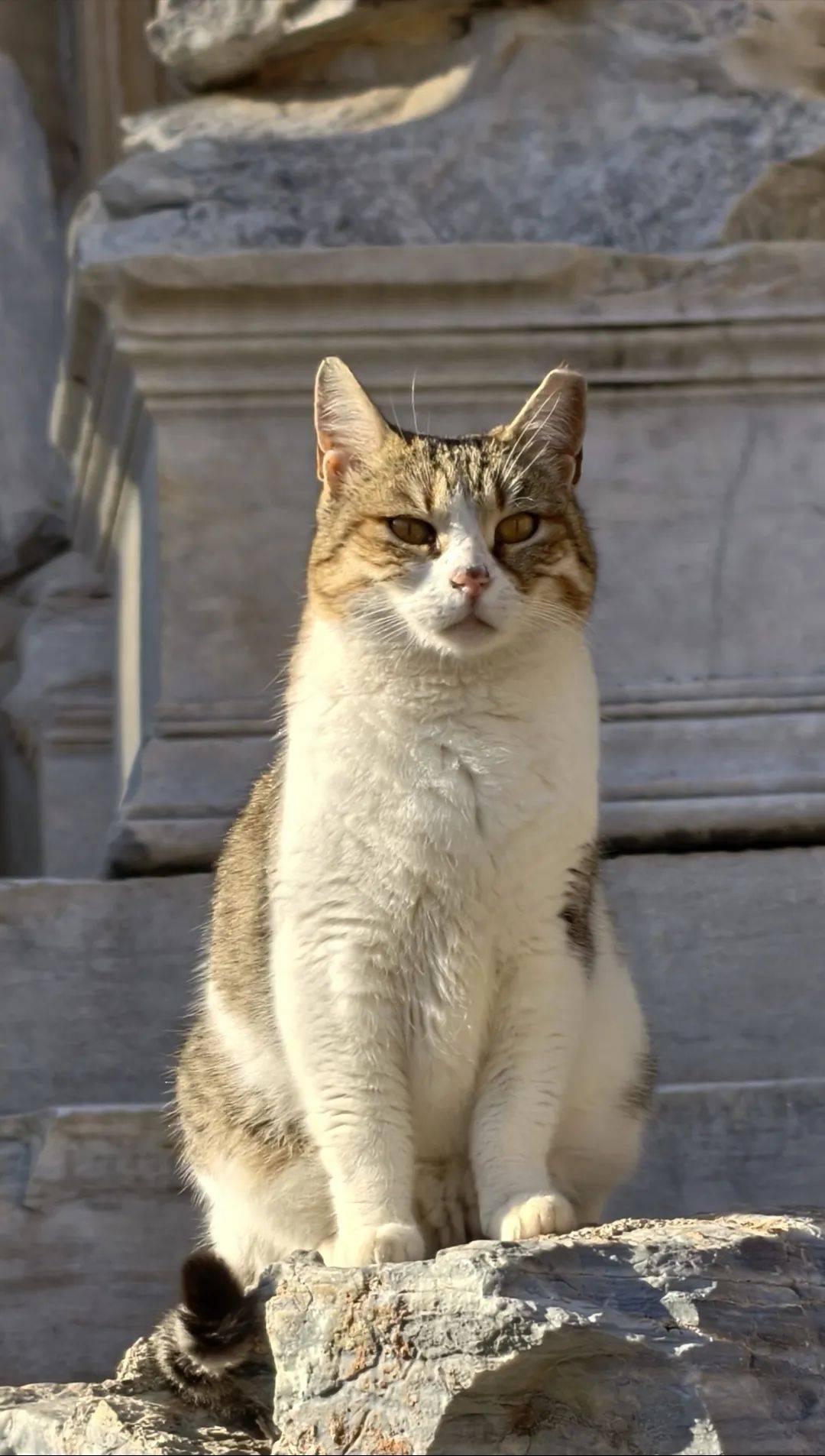 阿斯潘多斯古城遗址和大巴扎墙角的猫