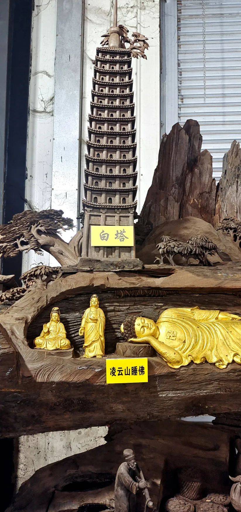 卧佛祥,塔高昂,精雕乌木绸都匠。
