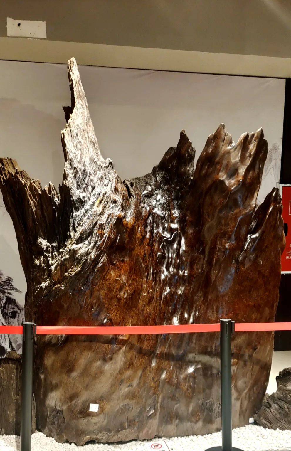 深棕凝亮,纹如涛壮,蜿蜒万里山河样。